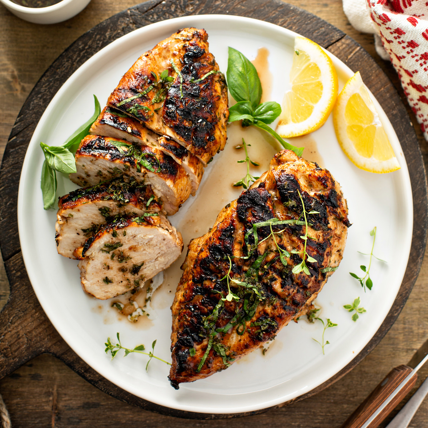 Savor tender chicken marinated with fresh herbs and zesty lemon.